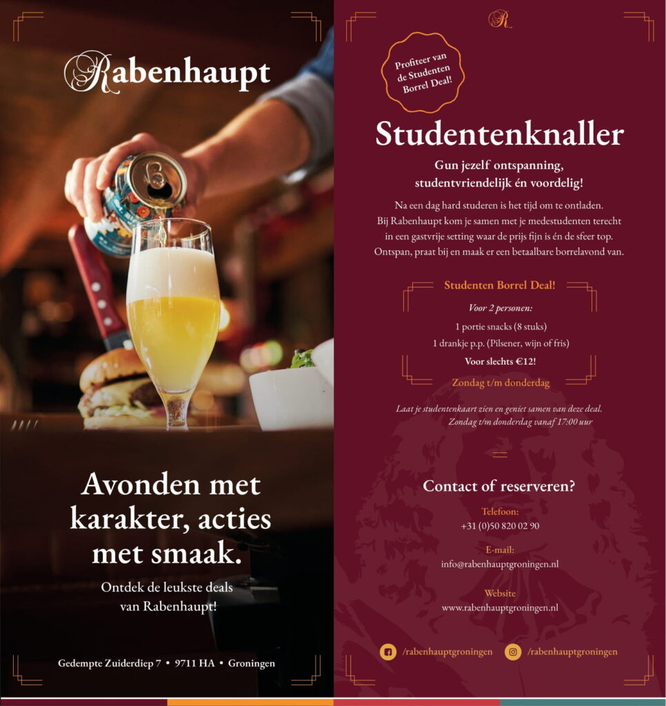 Elke eerste en derde donderdag van de maand nodigen wij jou en je team uit voor vier rondes vol kennis, muziek en humor. Kom samen, lach samen en strijd om de titel ‘Slimste Stamgast’. Tijdens de quiz wordt er een lekker hapje geserveerd, en na afloop kun je samen nagenieten van de quiz met een drankje én de gezelligheid van Rabenhaupt.